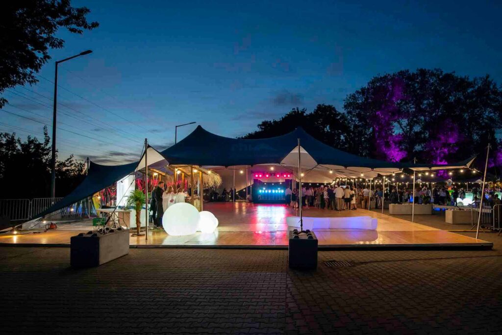 Afin d’assurer le confort de vos invités, nous proposons également la location de planchers, qui peuvent être installés sur l’ensemble du chapiteau ou uniquement pour une piste de danse.