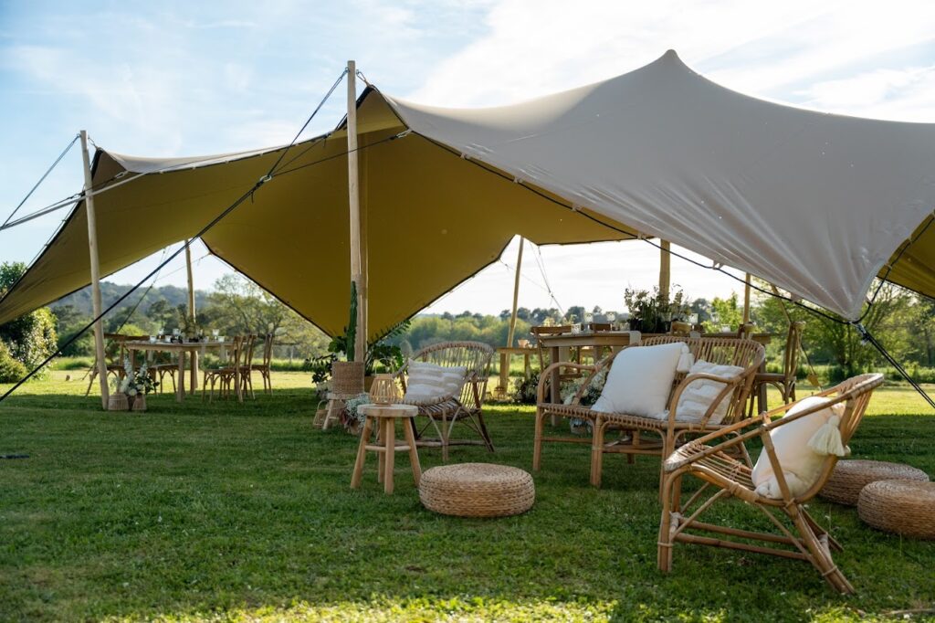 Nous proposons la location de tentes stretch ou nomades, très appréciées pour les mariages et réceptions haut de gamme, offrant un rendu esthétique moderne et naturel. La tente traditionnelle, elle, allie fonctionnalité et esthétique en offrant un espace modulable, élégant et protégé des intempéries.